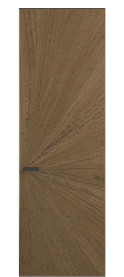 Полотно Rift в скрытом алюминиевом коробе становится полноценным элементом декора. В коллекции представлено 9 моделей дверей в высоте до 3 метров. Рисунок раскладки шпона варьируется от простого до сложного. «Рубашка» для каждого полотна подбирается вручную по цвету, текстуре и фактуре.