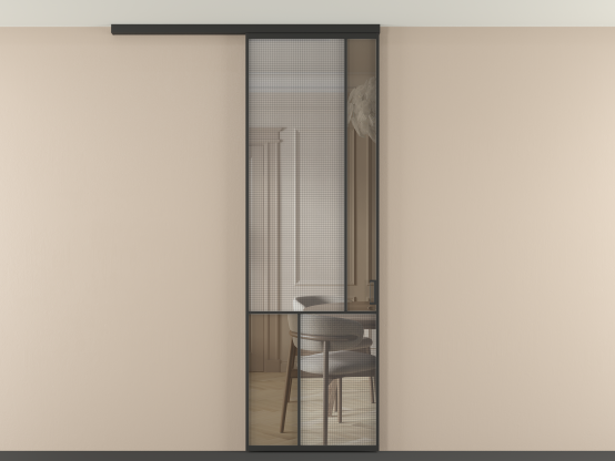 Во всех алюминиевых перегородках, независимо от типа установки, используется компланарный раздвижной механизм, благодаря которому декоративная крышка и полотно находятся в одной плоскости.