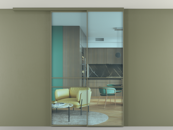 Во всех алюминиевых перегородках, независимо от типа установки, используется компланарный раздвижной механизм, благодаря которому декоративная крышка и полотно находятся в одной плоскости.