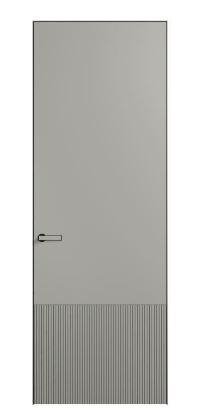 Это полотна с рельефной фрезеровкой. Этот прием делает интерьер объемным, тактильным, вносит интересную текстуру и создает современный образ. Волнистый рельеф может быть выполнен по ламелям из массива дуба в древесных матовых отделках, либо исполнен по натуральному и экологически безопасному материалу — ХДФ, покрытому гладкой эмалью актуальных оттенков.
