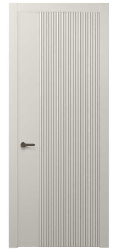 Dune — коллекция дверей украшена частой прямой фрезеровкой, которая напоминает волны дюн в пустыне. Созданная на поверхности полотна текстура привлекает взгляд и добавляет глубину пространству. Двери Dune — это сочетание современного дизайна и вдохновения живописными природными ландшафтами.