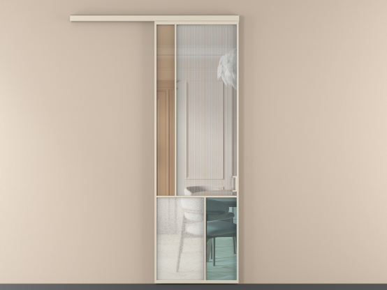 Во всех алюминиевых перегородках, независимо от типа установки, используется компланарный раздвижной механизм, благодаря которому декоративная крышка и полотно находятся в одной плоскости.